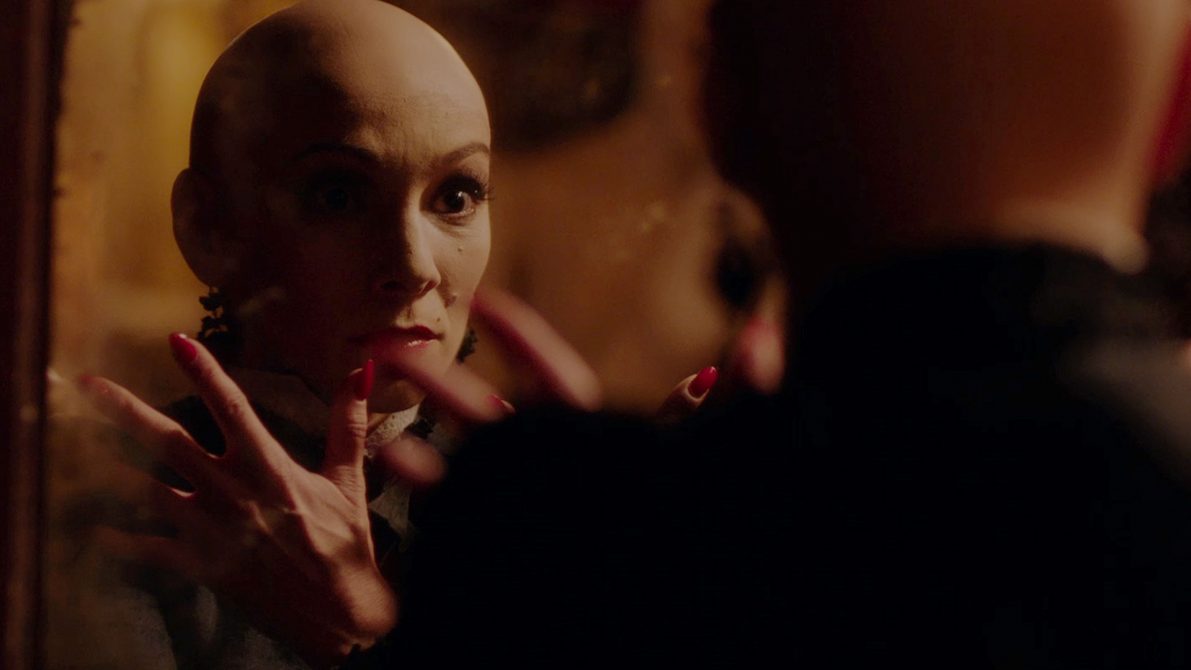 Split in two, due to events that shouldn’t be spoiled, In Fabric first tells the story of a romantically dissatisfied single mother, Sheila, before venturing into the lives of couple Babs and Reg—a washing machine repair man who harbors an unexpectedly sensuous proficiency with technical lingo. Sheila heads to her local department store in need of an outfit for an upcoming blind date. The date will unsurprisingly end abruptly, but that utterly bizarre shopping trip beforehand will have lasting effects, just as it does for Babs and Reg. Miss Luckmoore, the saleswoman who assists Sheila and Babs with their respective purchases, has a vampiric stare, floating gait, and weapon-like fingernails. Together with the flock of similarly spooky sales associates and their physically flaky boss, Luckmoore targets buyers of a dress that will haunt them, in search of the psychosexual satisfaction the crew receive in return.