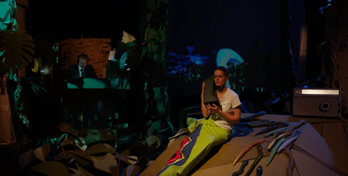 In The Jungle, playfully and sorrowfully tells the tale of an unreliable narrator in a self imposed exile. Given a grant to study the equivalent of animal cries in jungle flora our heroine has lived for 1,612 days deep in an unnamed jungle. This jungle serves as an extended metaphor for excessive and continual growth and death, fear and sustenance; a metaphorical space of chaos in which the scientist finds solace and which stands in contrast to the human jungle of ‘civilization’.
