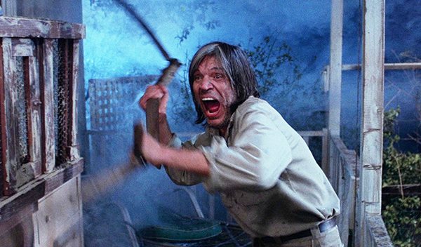 Eaten Alive mixes an aggressive, hallucinatory drive with the out-of-control theatrics of an off-off-Broadway tribulation.Neville Brand is unforgettable as the gibbering yokel manning a decrepit swampside motel (beautifully rendered on a dusty soundstage.) As Nightmare On Elm Street‘s Robert Englund, Phantom of the Paradise‘s William Finley and Chainsaw‘s Marilyn Burns make their way to this charnel house, Brand brandishes his trusty scythe…Eaten Alive‘s non-stop carousel of freakitude embodies the mania Hooper can be so adept at catching in a bottle.